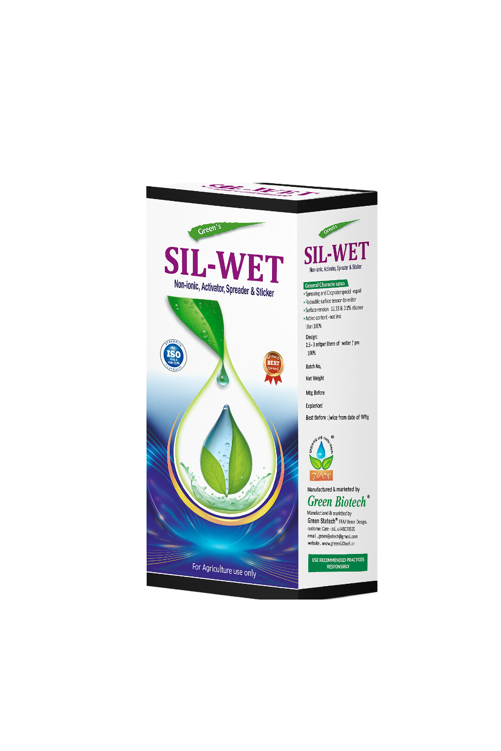 SIL-WETT 5 IN 1 is a premium adjuvant from GREEN BIOTECH, designed to optimize the performance of your agricultural chemicals. It acts as a superior spreader and wetting agent by reducing surface tension to an extremely low level. This results in rapid, uniform spreading and facilitates the uptake of chemicals into plant tissue for near-complete coverage.